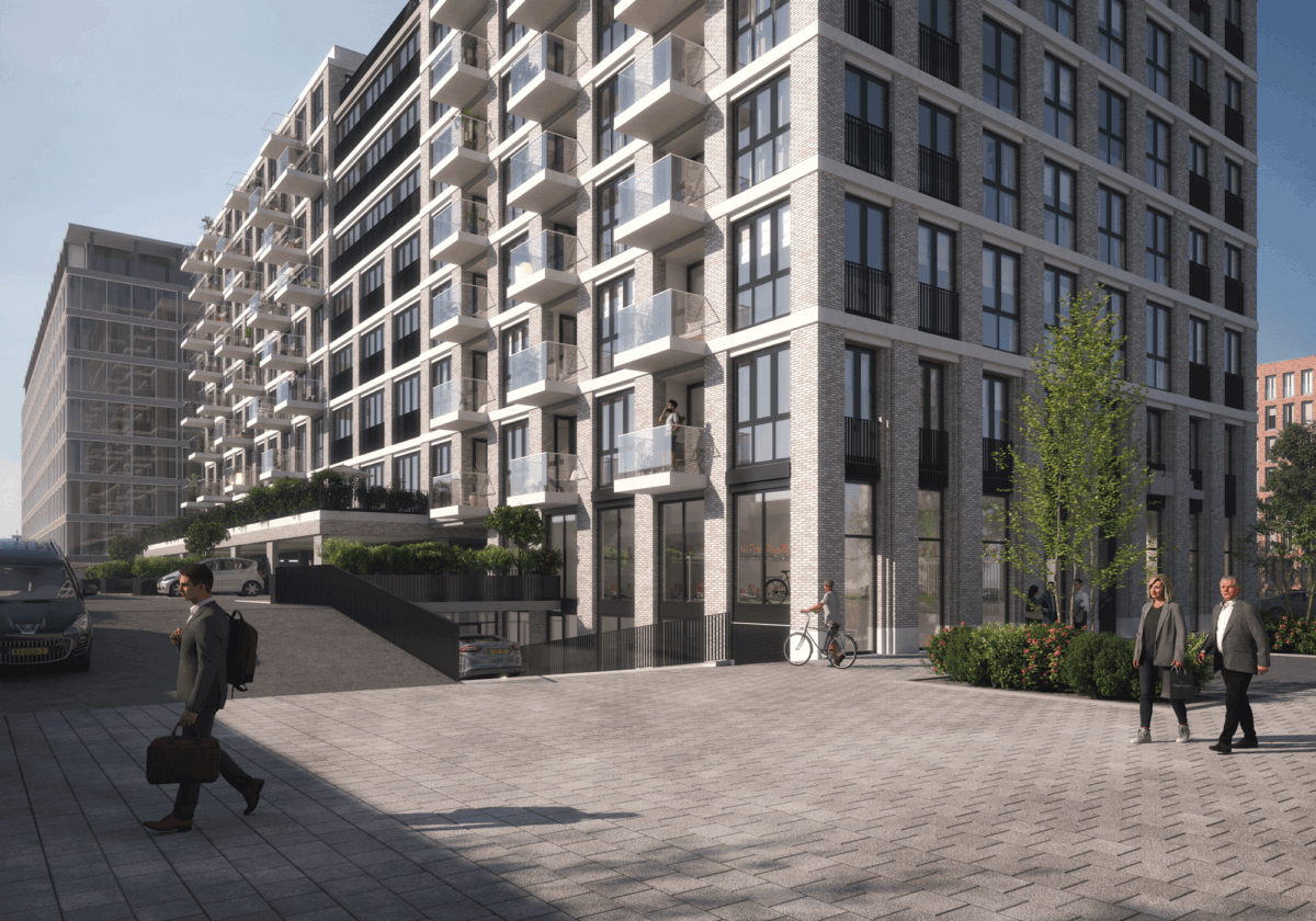 The second phase expands on this ambition with a mixed-use development of 43,500 sqm (GFA), of which nearly 85% is dedicated to residential use. Designed around generous green courtyards and shared inner gardens, it combines approximately 37,000 sqm of residential area with active ground-floor spaces hosting retail, services, and communal amenities. The architecture alternates heights and setbacks, creating a lively and harmonious urban landscape, while parking is thoughtfully integrated underground. This phase embodies a sustainable and forward-looking vision: delivering a vibrant contemporary living environment while contributing to the transformation of the Schinkelkwartier into one of Amsterdam’s most attractive residential districts.