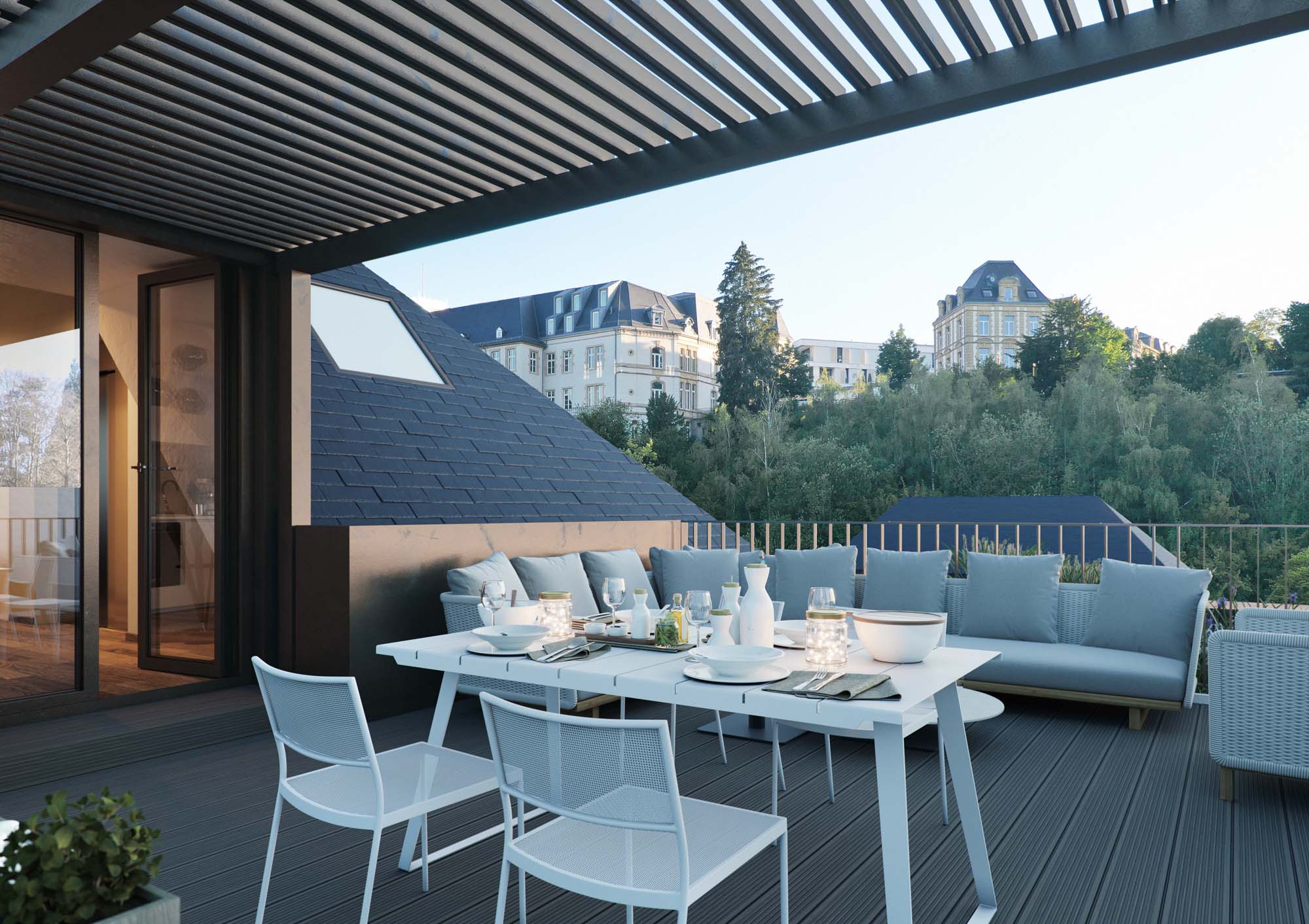Designed as a car-free village-like district, the project encourages social interaction through landscaped communal areas, generous terraces, and pedestrian-friendly pathways connecting the homes. Direct access to public transport – tram, funicular, and panoramic elevator – along with shared electric bikes and cars reflects a sustainable and forward-thinking vision of urban living. Blanchisserie offers an exceptional living environment where private comfort meets a sense of community, in a setting that is both steeped in history and oriented toward the future.
