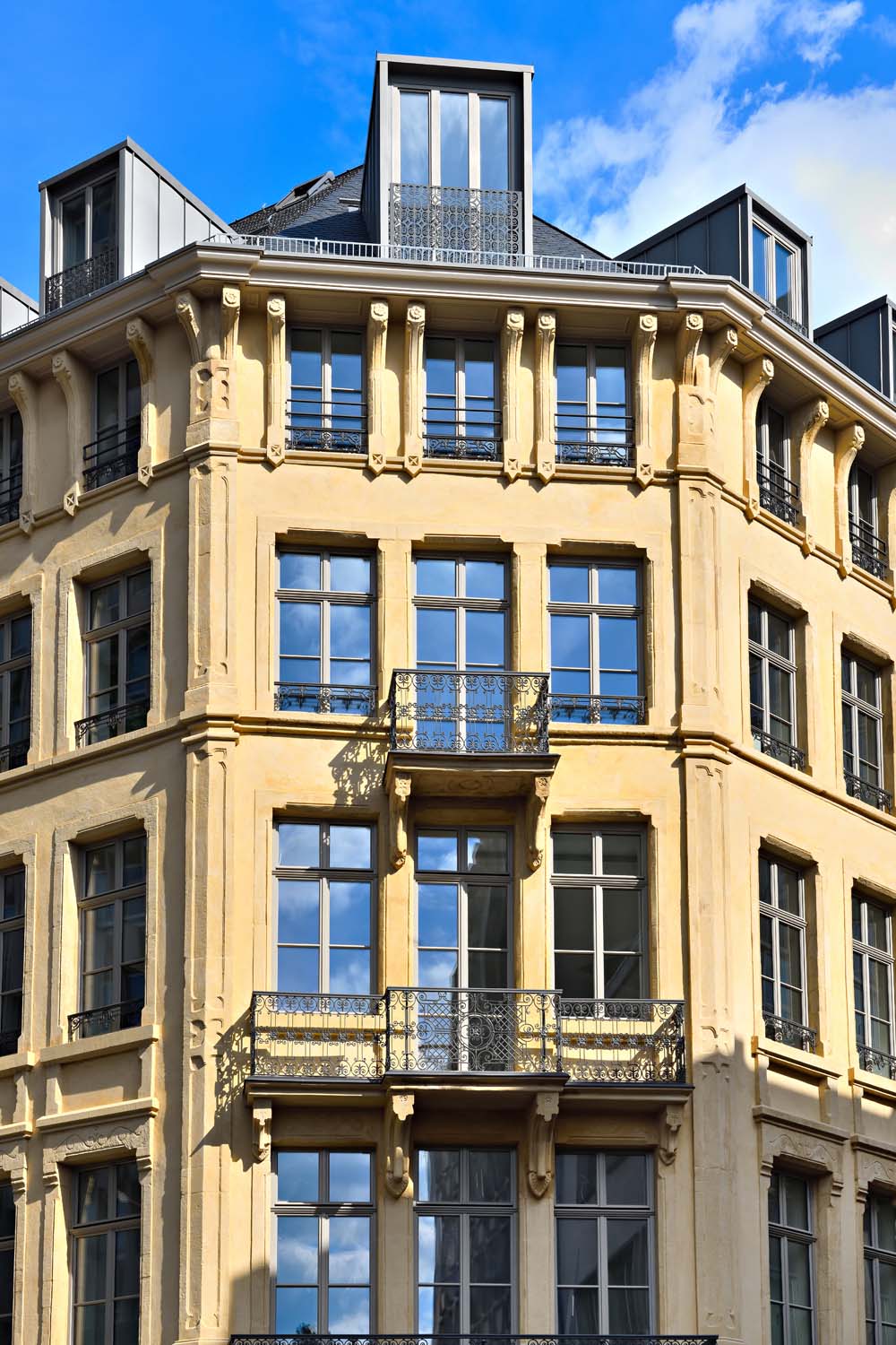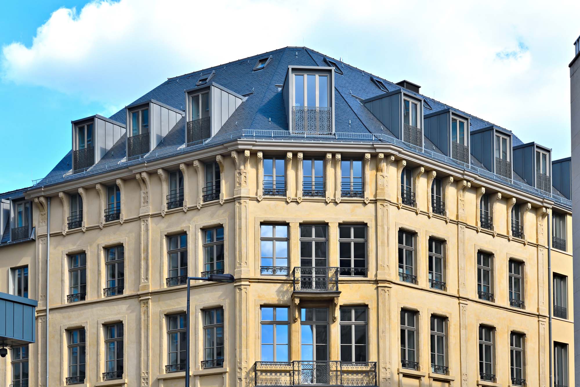 Designed with architectural precision, the project stands out through its optimized reinforced concrete structure, ventilated façade in high-end materials and thermal envelope engineered to deliver comfort, durability and low energy consumption. The technical infrastructure — connection to the district heating network, photovoltaic installation, high-efficiency dual-flow ventilation and pre-equipment for electric mobility systems — positions the development as a future-proof real estate asset, combining technical excellence with controlled operational costs. Each unit is conceived to ensure sustained energy performance while preserving a strong architectural identity aligned with its urban context.